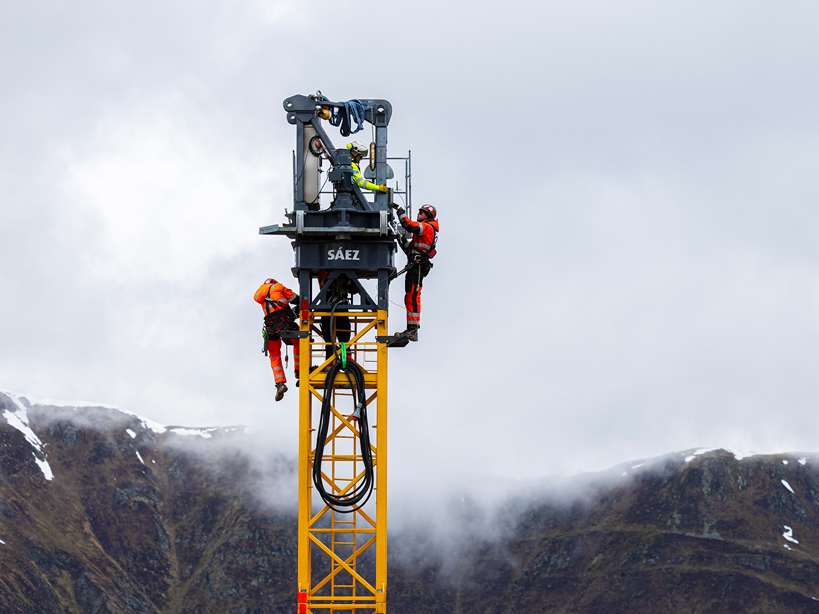 - Präzise Passung der Komponenten: Die Ingenieurskunst von Grúas Sáez garantiert eine millimetergenaue Passform aller Bauteile. Dadurch wird die Manövrierzeit in der Höhe verkürzt und eine schnelle, sichere Montage nach dem Absetzen durch den Hubschrauber ermöglicht.