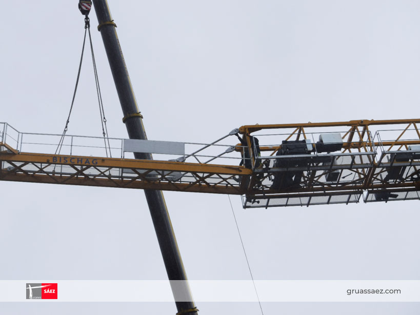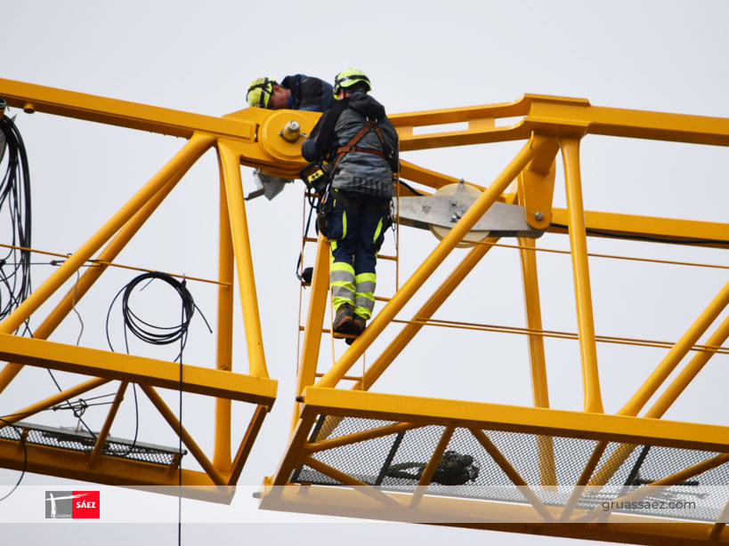 Das Modell Grúas Sáez TLS 75 14T SR, ist ein Turmdrehe-Kran, der nur im Modus II Strang (SR) arbeitet, hat eine Spitzenlast auf 75m von 2.090 kg, und eine maximale Belastung von 14.000 kg bei einem maximalen Abstand von 15m vom Turm.