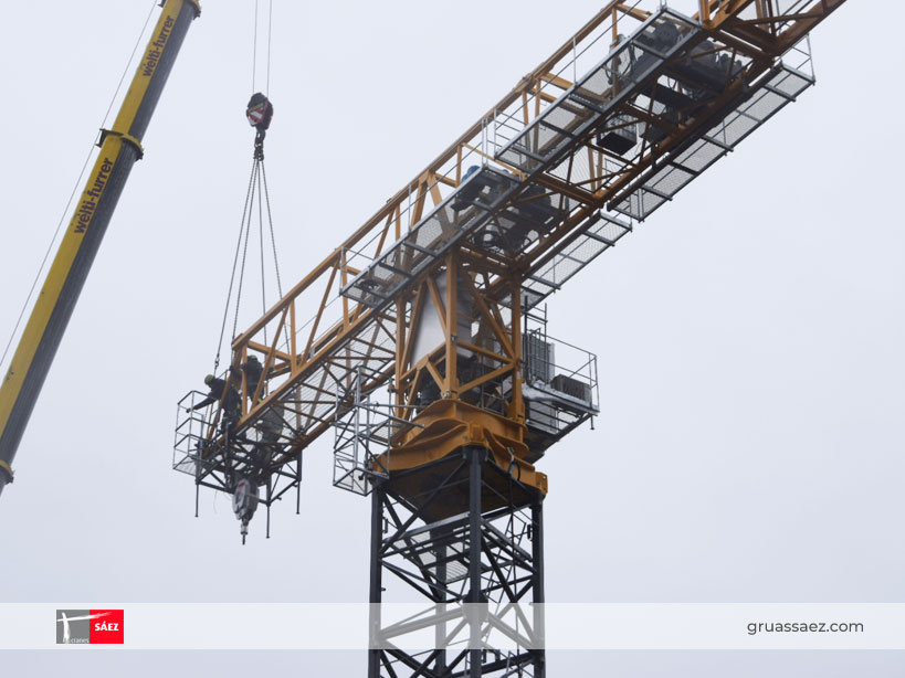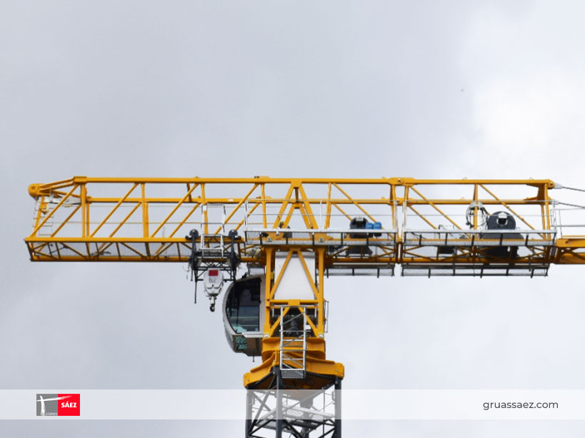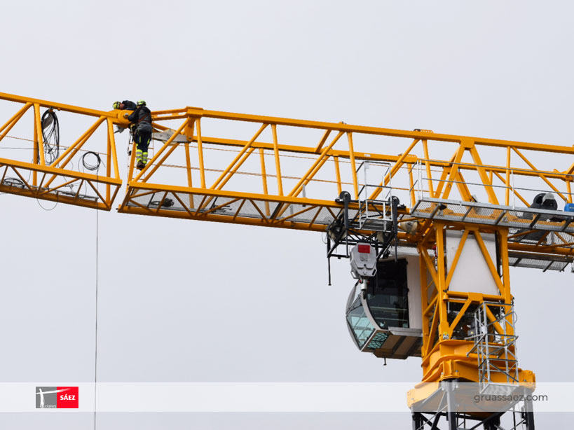 Der Kran TLS 75 14T SR von Grúas Sáez ist ein sehr vielseitiges Modell, für seine 75m Ausladung, seine Spitzenlast und maximale Last Fähigkeiten, die wiederum auf großen Höhen auf 2,10m Turme und 4,5 x 4,5m Rahmen montiert werden kann.