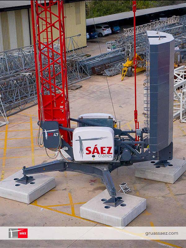 Der HT47 repräsentiert den großen technologischen Durchbruch von GRÚAS SÁEZ, was Schnellmontage Krane betrifft. Die Arbeit von drei Jahren Forschung und Entwicklungsarbeit, in die das ganze Unternehmen sich Bemüht hat ein Produkt zu entwickeln, das fast einzigartig auf dem Markt ist.