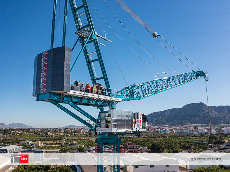 Dieses Wipp-Kran Modell ist eine «Bestie» in Bezug was die Leistung betrifft, da es in der Lage ist, ein Maximum von 36. 000 kg Gewicht zu tragen auf ca. 10 m vom Turm oder 24. 000 kg wenn wir den Wagen zwischen 15 und 19 m positionieren. Dieser Kran ist mit einem LEBUS-INVERTER-Motor von 167 PS (123 Kw) in der Lage, eine Last von 1. 725Kg zu heben in 248m/m. Hat auch eine Spitzenlast (70 m), die bis zu 6.600 kg im II Strang-Modus oder 5. 500 kg im IV Strang-Modus erreichen kann.